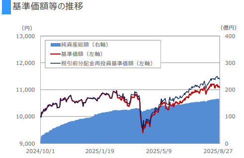 半年の収益率も、同時期のオルカン(オールカントリー)は+10%なので、リターンではやや劣ります。