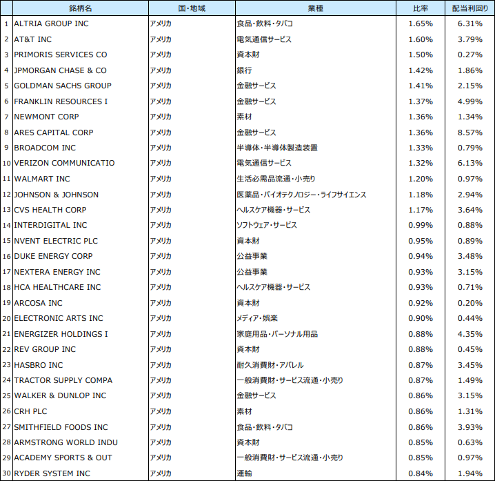 米国高配当株式の投資先: