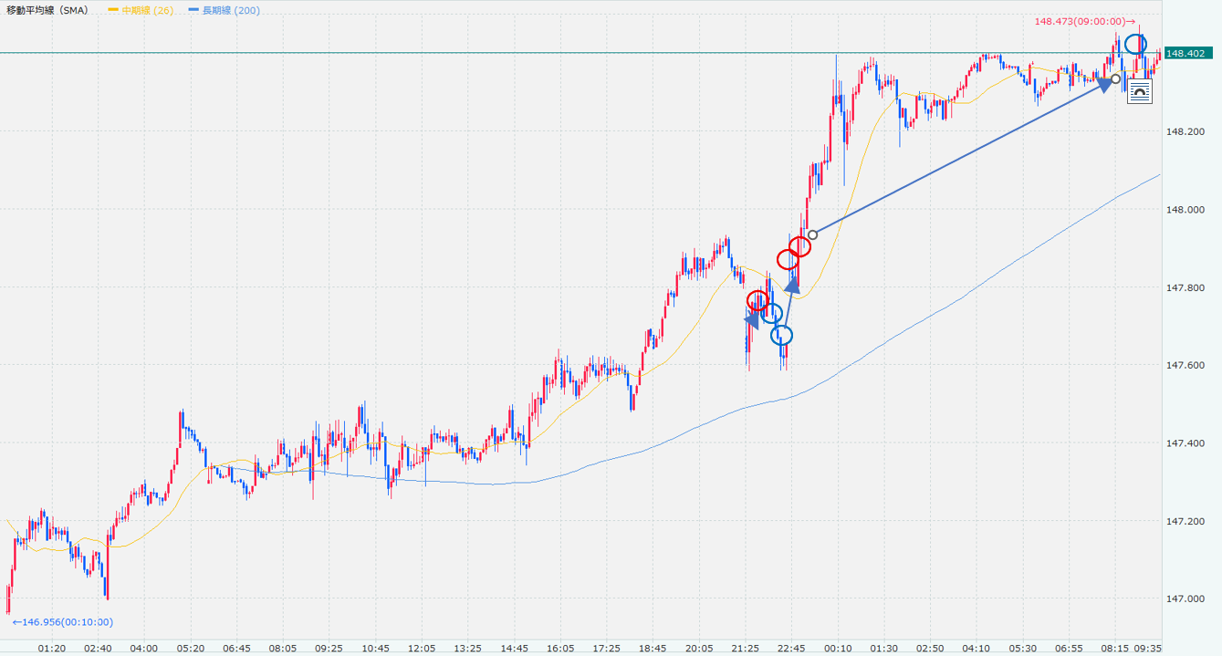 ⑤は直近高値148.51を意識して利確できたのはGOOD。やっぱり「心が落ち着いている状態」でないと、いい判断はできないと実感しました。