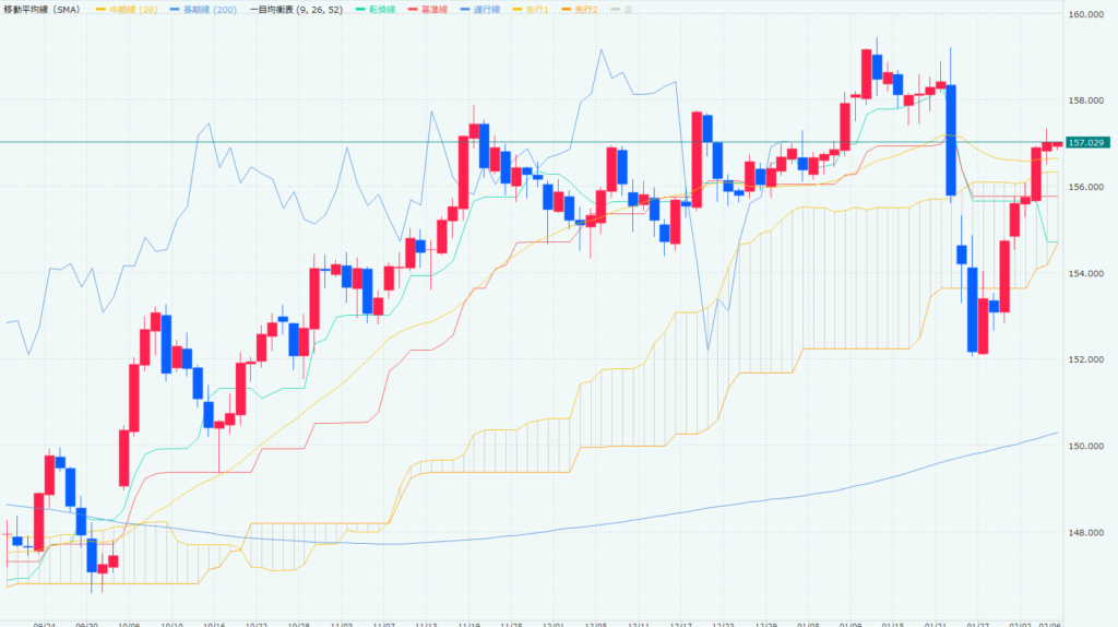 この流れを見る限り、158円を意識し始める局面に入ってきた印象です。