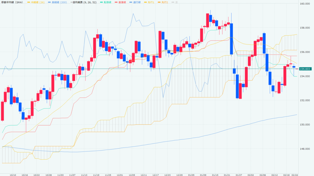 NYダウ大幅安もドル円は154~155円レンジ継続|方向感喪失相場で手を出すと負ける理由【2月24日FX相場】